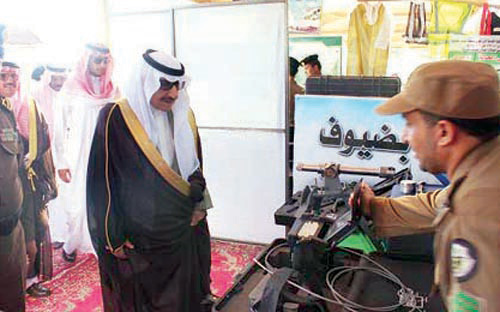 بعدها تشرف مدير شرطة المنطقة بتقديم درع تذكارية لسموه ثم اطلع سموه على تجهيزات الدفاع المدني من خلال الآليات الحديثة التي تم دعمها له لتكون في خدمة الحجاج بالمنطقة، كما اطلع سموه على الخدمات التي تقدمها أمانة المنطقة للحجاج، ثم زار سموه مقر جامعة الحدود الشمالية، حيث شاهد سموه الخدمات التي تقدمها الجامعة لضيوف الرحمن.