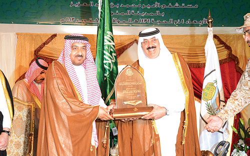 افتتح صاحب السمو الملكي الأمير متعب بن عبدالله بن عبدالعزيز، وزير الحرس الوطني يوم أمس مستشفى الأمير محمد بن عبدالعزيز بالمدينة المنورة التابع للشؤون الصحية بوزارة الحرس الوطني، بحضور صاحب السمو الأمير الدكتور خالد بن فيصل بن تركي وكيل الحرس الوطني بالقطاع الغربي، وصاحب السمو الملكي الأمير فيصل بن سلمان بن عبدالعزيز أمير منطقة المدينة المنورة ومسؤولي القطاعات العسكرية والمدنية.