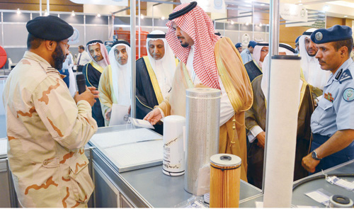 ثم تجول سموه في معرض قطع الغيار المصنعة محلياً الذي ضم قطاعات أفرع القوات المسلحة (البرية والجوية والبحرية والدفاع الجوي)، بالإضافة إلى شركة الإلكترونيات المتقدمة التي تخدم القوات المسلحة بتوفير قطع الغيار بجودة عالية وتكاليف أقل والمصنعة في المملكة.
