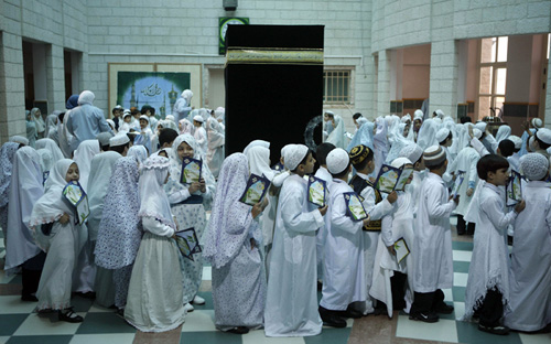 - أطفال فلسطينون في مدرسة طلائع الأمل في مدينة نابلس يعيشون تجربة مناسك الحج ... الجزيرة