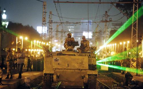 - عناصر من الجيش المصري داخل ناقلة جنود مدرّعة يقومون بدورية على طريق مخصص للقطار...رويترز