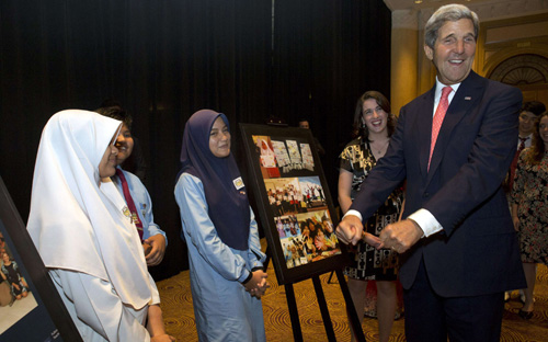 - وزير الخارجية الأمريكي جون كيري يتحدث مع مجموعة من طلاب ماليزيين اثناء زيارته لماليزيا لافتتاحه مؤتمرا لرجال الاعمال نيابة عن الرئيس اوباما..رويترز