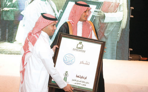كرم صاحب السمو الملكي الأمير أحمد بن فهد بن سلمان - رئيس اللجنة التنفيذية بالجمعية الخيرية لرعاية الأيتام بمنطقة الرياض (إنسان) شركة ابن سمار للتجارة والمقاولات لمساهمتها في رعاية حفل جائزة التميز الثالث الذي نظمته الجمعية مؤخرا بفندق الإنتركونتينتينال، وسلم سموه درعا تذكاريا للشركة تسلمه المستشار الإعلامي نايف الكرشمي نيابة عن الشيخ مسعد بن سمار.