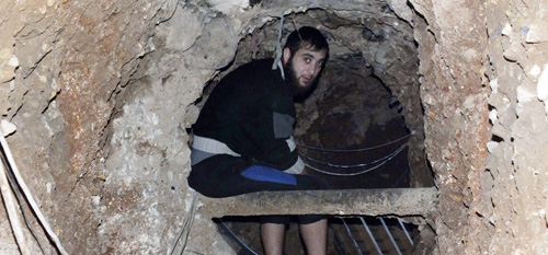 - أحد أفراد الكتائب المقاتلة في سوريا يجلس داخل نفق يستعمله المقاتلون للتنقل بين المناطق المحاصرة في مدينة حمص ... (رويترز)
