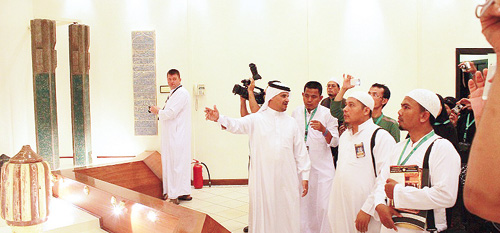 وفي متحف الحرمين الشريفين قام الضيوف بالتجول في أجنحة المتحف، وشاهدوا الصور الفوتوغرافية للحرمين الشريفين، ومقتنيات الحرمين القديمة والحديثة، وبئر زمزم، وباب الكعبة المشرفة. وقد أبدى الضيوف إعجابهم بمقتنيات المتحف وبالاهتمام الكبير الذي يبديه قادة هذه البلاد للحرمين الشريفين. وأبدى الحجاج إعجابهم بمصنع كسوة الكعبة، وقالوا إنهم تعرفوا على كيفية ومراحل صناعة ثوب الكعبة، وعلى التقنية المستخدمة في صناعة الكسوة، مشيرين إلى أنهم اطلعوا على مقتنيات متحف الحرمين الشريفين قديماً وحديثاً.