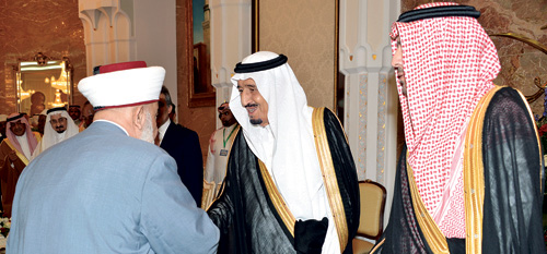وقد ألقيت كلمة خادم الحرمين الشريفين الملك عبدالله بن عبدالعزيز آل سعود ألقاها نيابة عنه صاحب السمو الملكي الأمير سلمان بن عبدالعزيز آل سعود ولي العهد نائب رئيس مجلس الوزراء وزير الدفاع وفيما يلي نصها: بسم الله الرحمن الرحيم الحمد لله والصلاة والسلام على من بُعث رحمة للعالمين، شاهداً ومبشراً ونذيراً، داعياً إلى الله بإذنه، وسراجاً منيراً.. ونحمده تعالى القائل: {الْيَوْمَ أَكْمَلْتُ لَكُمْ دِينَكُمْ وَأَتْمَمْتُ عَلَيْكُمْ نِعْمَتِي وَرَضِيتُ لَكُمُ الإِسْلاَمَ دِينًا} وقوله: {الْحَجُّ أَشْهُرٌ مَّعْلُومَاتٌ فَمَن فَرَضَ فِيهِنَّ الْحَجَّ فَلاَ رَفَثَ وَلاَ فُسُوقَ وَلاَ جِدَالَ فِي الْحَجِّ وَمَا تَفْعَلُواْ مِنْ خَيْرٍ يَعْلَمْهُ اللّهُ وَتَزَوَّدُواْ فَإِنَّ خَيْرَ الزَّادِ التَّقْوَى وَاتَّقُونِ يَا أُوْلِي الأَلْبَابِ}. أيها الإخوة الحضور .. أيها المسلمون في مشارق الأرض ومغاربها: السلام عليكم ورحمة الله وبركاته: أهنئكم بعيد الأضحى المبارك، سائلاً الله جل جلاله أن يتقبلَ من عباده حجهم، وأن يغمرنا جميعاً برحمته، وغفرانه، وعفوه، وأن يعين الأمة الإسلامية على تحمل مسؤولياتها التاريخية، تجاه دينها وعزة أوطانها، وتعزيز وحدة الصف، والتعامل مع الغير بإنسانية متسامحة لا غلو فيها، ولا تجبر، ولا رفض للآخر لمجرد اختلاف الدين، فما اتفقنا عليه مع الآخر فله المنزلة توافقاً مع نوازع القيم والأخلاق وفهم مدارك الحوار الإنساني وفق مبادئ عقيدتنا، وما اختلفنا عليه فديننا الإسلامي والقول الفصل للحق تعالى: {لَكُمْ دِينُكُمْ وَلِيَ دِينِ}. أيها الإخوة والأخوات: إننا أمة -ولله الحمد والمنة- عزيزة بعقيدتها، ما دمنا على قلب رجل واحد، فهمومنا واحدة، وآمالنا مشتركة، ولا عز ولا تمكين إلاّ في التمسك بعقيدتنا، واستنهاض كل القيم الأخلاقية التي أمر بها رب العزة والجلال، فكان الإسلام ولا زال بوسطيته، واعتداله، وتسامحه، ووضوحه، فيما لا يمس العقيدة النقية، طريقنا إلى فهم الآخر وحواره، وطريقنا للفهم الحضاري لحرية الأديان والثقافات والقناعات وعدم الإكراه عليها، يقول الحق تعالى: {لاَ إِكْرَاهَ فِي الدِّينِ قَد تَّبَيَّنَ الرُّشْدُ مِنَ الْغَيِّ}. ومن هذا المنطلق تم إنشاء مركز الملك عبدالله بن عبدالعزيز العالمي للحوار بين أتباع الأديان والثقافات، ليكون مدخلاً بين المسلمين وبين أتباع الأديان والثقافات اأخرى، لنقول للعالم إننا نمد أيدينا محترمين جميع الأديان السماوية في مبادرة تنبذ الكراهية، والعنف، وتبين للعالم أن الإسلام دين الصفاءِ، والنقاءِ، والوسطية. فإذا كان هذا منهجنا مع غير المسلمين، كان من الواجب علينا جميعاً، نبذ الخلافات والتناحر بين المسلمين أنفسهم، وعلى هذا الأساس دعونا لإنشاء مركز الحوار بين المذاهب الإسلامية في المدينة المنورة والذي تبناه مؤتمر التضامن الإسلامي الذي عقد في مكة المكرمة في شهر رمضان المبارك سنة 1433هـ، هدفنا من ذلك صلاح أمر المسلمين، وخشية من الفرقة، والشتات. قناعة منا بأن الحوار بين المذاهب الإسلامية، هو بعد الله -جل جلاله- وبقدرته، المدخل السليم لفهم بعضنا بعضا، فما اتفقنا عليه فالحمد لله فضلاً ومنة، وما اختلفنا عليه يجب أن لا يكون طريقاً لهدم وحدة الأمة الإسلامية، فباب الاجتهاد سنة الله في خلقه، ولذلك جاء الخلاف في الرؤية بين المذاهب رحمة للعالمين، على أن لا يكون مدخلاً للمساس بعقيدتنا السليمة التي لا نقبل المساومة عليها. أيها الإخوة المسلمون: من أرض الرسالة ومهبط الوحي، نقول للعالم أجمع، إننا أمة لا تقبل المساومة على دينها، أو أخلاقها، أو قيمها، ولا تسمح لكائن من كان أن يمسَ سيادة أوطانها، أو التدخل في شؤونها الداخلية، أو الخارجية، وليعي العالم أجمع بأننا نحترمه، ونقدر مساهمته الإنسانية عبر التاريخ، ولكن لا خيار أمام من يحاول أن يستبدَ، وفق نظرته الضيقة، أو مصالحه، فنحن أمة سلامتها من سلامة دينها وأوطانها، وتعاملها مع الآ