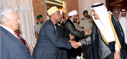 نيابة عن خادم الحرمين الشريفين الملك عبدالله بن عبدالعزيز آل سعود -حفظه الله- أقام صاحب السمو الملكي الأمير سلمان بن عبدالعزيز آل سعود ولي العهد نائب رئيس مجلس الوزراء وزير الدفاع في الديوان الملكي بقصر منى أمس حفل الاستقبال السنوي لأصحاب الفخامة قادة الدول الإسلامية وكبار الشخصيات الإسلامية وضيوف خادم الحرمين الشريفين ورؤساء بعثات الحج الذين أدوا فريضة الحج هذا العام. وقد استقبل سمو ولي العهد فخامة الرئيس عبدالله غول رئيس الجمهورية التركية وفخامة الرئيس ممنون حسين رئيس جمهورية باكستان الإسلامية وفخامة الرئيس عمر حسن البشير رئيس جمهورية السودان وفخامة الرئيس محمد ولد عبدالعزيز رئيس الجمهورية الموريتانية وفخامة الرئيس مانويل ناماجو رئيس جمهورية غينيا بيساو ودولة الدكتور عبدالله النسور رئيس الوزراء الأردني ودولة السيد نور الدين برهان نائب رئيس جمهورية جزر القمر المتحدة وكبار المسؤولين في عدد من الدول الإسلامية.