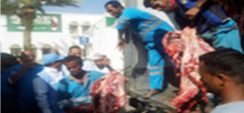 ضبطت فرقة تابعة لأمانة جدة فرع بلدية أم السلم، عملية تهريب لحوم أضاحٍ مخالفة للأنظمة الصحية، قدمت من مكة المكرمة في ( 6 ) سيارات برادات قادمة من طريق الملك عبدالله من الشرق باتجاه الغرب طريق الحرازات ، واشتبهت في قيامها بتهريب لحوم الأضاحي القادمة من مكة المكرمة ، وعلى الفور تم إيقافها من قبل المراقبين وتم الكشف على الذبائح البالغ عددها ( 619 ) ذبيحة . واتضح عدم الكشف على المذبوحات بيطرياً ووجود بقايا الجلد على الذبائح وتغير لونها الفسيولوجي ، بالإضافة لسوء التخزين وكذلك وجود رائحة كريهة تدل على فساد اللحوم. وقالت أمانة جدة في تصريح إعلامي إن ذلك يأتي تطبيقًا لتوجيهات أمين جدة على حماية الأسواق من تسرب بعض اللحوم المخالفة للأنظمة الصحية إلى أسواق جدة لحماية المستهلك من تلك التجاوزات، و تم تخصيص فرق متخصصة لمتابعة تحرك البرادات على مستوى الفروع والبلديات التابعة للأمانة.