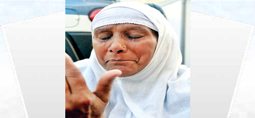 اما الحاجة سهاد أبو الكلام هندية الجنسية التي ذرفت عيناها بالدموع فرحًا بقدومها إلى المملكة برفقة ابنها البار لأداء فريضة الحج بعد أمنيَّة دامت عشر سنوات لفقد جواز سفرها.