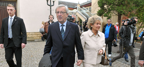 - رئيس وزراء لوكسمبورغ جين كلود وزوجته كرستيان بعد خروجهما من المركز الانتخابي بعد التصويت، وذلك بعد فضيحة (سوء التصرف) بجهازِ الأمن والتي كسرت الحكومة الإئتلافيةَ ... أ ف ب