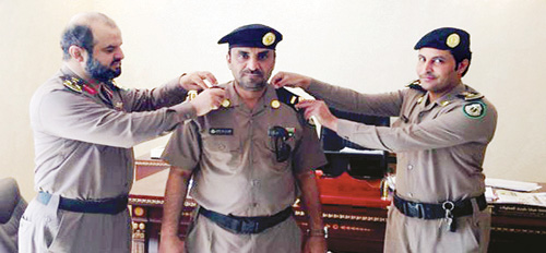 قلَّد مدير مرور منطقة القصيم بالنيابة العميد عبدالله السحيباني رئيس الرقباء عوض منير العتيبي مدير مرور مطار الأمير نايف بن عبدالعزيز رتبته الجديدة بعد ترقيته من رقيب أول إلى رئيس رقباء. مبروك وعقبال الرتب العليا.