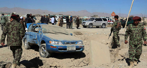 - تُفتّشُ قوّاتُ الأمن الأفغانيةُ موقع انفجار سيارة عن طريق قنبلة يتحكّم فيها عن بعدِ حيث أصيب ثلاثة أشخاصِ على الأقل في الانفجار ..أ ف ب