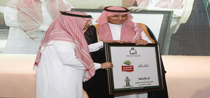 كرم صاحب السمو الملكي الأمير أحمد بن فهد بن سلمان رئيس اللجنة التنفيذية بالجمعية الخيرية لرعاية الأيتام بمنطقة الرياض (إنسان) شركة العثيم القابضة لمساهمتها في رعاية حفل جائزة التميز الثالث الذي نظمته الجمعية مؤخرا بفندق الإنتركونتينتينال لتكريم المتميزين من منسوبي الجمعية، وسلم سموه درعا تذكاريا للشركة استلمه محمد العنزي.