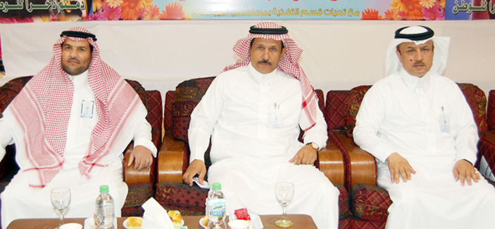 كما قدم شكره لرئيس قسم التغذية الأستاذ حمد السلوم ، على إعداد وتجهيز حفل المعايدة . بعد ذلك تناول الجميع المرطبات التي أعدت بهذه المناسبة ، وتبادلوا خلالها التهاني بعيد الأضحى المبارك .