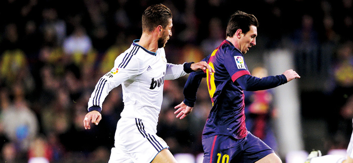 تختصر كلمة «كلاسيكو» ما قد يشهده ملعب كامب نو من معارك كروية منتظرة بين برشلونة وضيفه ريال مدريد في المرحلة العاشرة من الدوري الإسباني لكرة القدم غدا السبت. يستقبل برشلونة غريمه اللدود متصدرا الترتيب، برغم تعادله لأول مرة هذا الموسم بعد 8 انتصارات متتالية على أرض اوساسونا في المرحلة السابقة، فيما يحتل الفريق الملكي المركز الثالث بفارق 3 نقاط دافعا ثمن خسارته أمام جاره اتلتيكو. الجديد في مواجهة السبت، تبديل مدربي الفريقين، فكتيبة ريال سيقودها الإيطالي كارلو انشيلوتي الذي حل بدلا من البرتغالي جوزيه مورينيو غير المرغوب فيه في العاصمة والمنتقل إلى تشلسي الانكيزي، أما حامل اللقب فيلعب تحت إشراف الأرجنتيني خيراردو مارتينو بديل تيتيو فيلانوفا الذي يعاني من مرض السرطان. وسيعبر 98 ألف متفرج خلال الكلاسيكو عن دعمهم لفيلانوفا، فأعلن بطل إسبانيا أن الجمهور سيلوح بأوراق ملونة فور دخول الفريقين إلى الملعب راسما كلمتي «فورسا تيتو» (تشجع تيتو)، بألوان قميص الفريق وعلم كاتالونيا الأحمر والأصفر. والتقى الفريقان 257 مرة في جميع المسابقات والمباريات الودية، ففاز ريال مدريد 94 مرة وبرشلونة 105 وتعادلا 58 مرة. ويأمل الأرجنتيني ليونيل ميسي أفضل لاعب في العالم في الأعوام الأربعة الأخيرة أن ينفرد بصدارة هدافي المباريات الرسمية للكلاسيكو حيث يتعادل راهنا مع أسطورة ريال الفريدو دي ستيفانو (18 هدفا) مقابل 12 للبرتغالي كريستيانو رونالدو. وتتركز الأنظار على تشكيلة انشيلوتي التي قد تشهد مشاركة أساسية للويلزي السريع غاريث بايل المنتقل من توتنهام الانكليزي مقابل نحو 100 مليون يورو، ليكون إلى جانب الهداف البرتغالي كريستيانو رونالدو. وقاد رونالدو أمس الأربعاء الفريق الأبيض إلى الفوز على يوفنتوس الإيطالي 2-1 في دوري الأبطال واقترب من التأهل إلى الدور الثاني، فيما تعادل برشلونة على أرض ميلان الإيطالي 1-1 أول من أمس الثلاثاء. برشلونة عانى كثيرا الموسم الماضي من مرتدات ريال، برغم سيطرته الكاملة على الكرة، فلم ينجح في الفوز عليه في مسابقتي الدوري والكأس، ويعود فوزه الاخير الى ذهاب الكأس السوبر المحلية الموسم الماضي، وفي الدوري إلى العام 2011. واستبعد مارتينو أي مخاوف حول تشكيلته مصرا أن فريقه بحال جيدة برغم تعادله في آخر مباراتين: «لست متخوفا حول قدرة الفريق على تقديم أداء جيد. كنت أفضل لو فزنا على اوسسونا وميلان، لكننا لا نزال نتطور». من جهته، يبدو المهاجم البرازيلي نيمار الذي سعى ريال كثيرا لضمه، متحمسا لخوض مواجهته الأول في الكلاسيكو: «هذه المباراة الأهم بالنسبة لأي لاعب، وفيها يسعى لتقديم أفضل مستوى له. آمل أن نحقق الانتصار». ورأى المدافع الدولي جيرار بيكيه أن الفوز على ريال وتوسيع الفارق معه إلى 6 نقاط سيكون منعطفا في الموسم: «الكلاسيكو مباراة مختلفة خصوصا هذا الموسم، لأن اللقب انحصر بين الفريقين في السنوات الأخيرة». وعن تعادل ميلان الأخير، قال بيكيه: «ربما العودة بنقطة من سان سيرو الآن تبدو مخيبة بعد انتصاراتنا الكثيرة في المواسم الماضية، لكننا لا نزال في صدارة الدوري ومجموعتنا في دوري الأبطال». وفي المعسكر المقابل، رأى بايل أنه جاهز لخوض المنافسة برغم تعرضه لإصابات بسيطة أبعدته عن التشكيلة الأساسية: «أنا متأكد أنها ستكون تجربة مذهلة، ويجب أن نحقق الفوز والحصول على النقاط». ويأمل انشيلوتي أن يعود لاعب الوسط المدافع تشابي الونسو إلى الفريق بعد تعافيه من الإصابة، وفي فترة غيابه جرب مدرب ميلان السابق الكرواتي لوكا مودريتش والإلماني سامي خضيرة واسيير ايارامندي. ودافع انشيلوتي عن عدم فاعلية بايل، مؤكدا أنه سعيد لأدائه مع المهاجم الفرنسي كريم بنزيمة: «أريد أن أقول شيئا عن بنزيمة. طلبت منه أن يساعد الفريق دفاعيا في تقصي اندريا بيرلو. مع ثلاثة لاعبي وسط، تصعب مطاردة بيرلو من قبلنا... أما بايل فنزل عندما افتقد المباراة للقوة ولم يساعده ذلك على اللعب أفضل. حالته الجسدية جيدة وأصبح جاهزا للعب