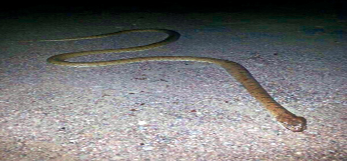 هاجم مساء أول أمس ثُعبان يتجاوز في طوله الـ ( 2 م ) إحدى الاستراحات في محافظة بقعاء شمالي حائل ( 90 ) كم وفي التفاصيل أنه وأثناء تجمع عدد من الأسر في إحدى الاستراحات في إحدى المناسبات تفاجأ الجميع بـ (أفعى) طويلة تُطارد الأطفال فتمت مطاردتها من قبل الرجال وعدد من المتواجدين لتتجه إلى قسم النساء وتُثير الرعب لدى النساء والأطفال المتواجدين في الداخل لتتمكن إحدى السيدات الموجودات وهي كبيرة في السن من اللحاق بها فوراً وضربها حتى الموت.