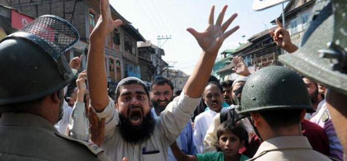 - يحتج الكشميريون الباكستانيون قرب مكتب الأمم المتحدة في إسلام أباد على سيطرة الهند على الشطر الآخر من كشمير... أ ف ب