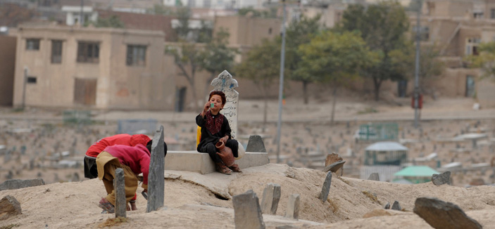 - أطفال أفغان يقومون باللعب في أحد المقابر قرب العاصمة كابول في ظل الانفلات الأمني التي تعيشه البلاد... ا ف ب