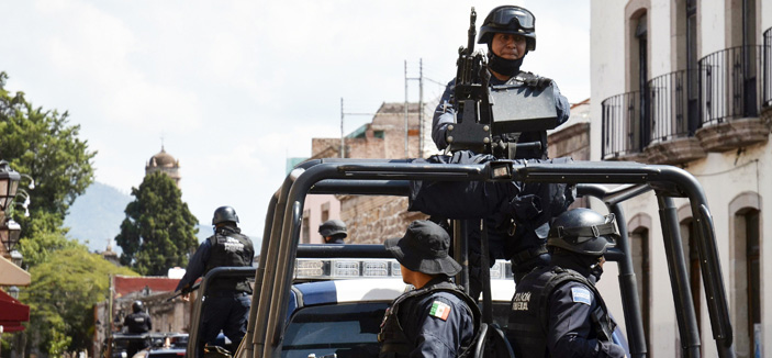 - الشرطة الاتحادية في المكسيك أثناء تنفيذها عملية ضد عصابات قامت بقطع الكهرباء عن الآلاف المساكن غرب البلاد... رويترز