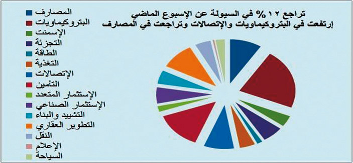 - 23 مليار ريال السيولة المجمّعة للسوق بتراجع حوالي 12% عن الأسبوع الماضي.
