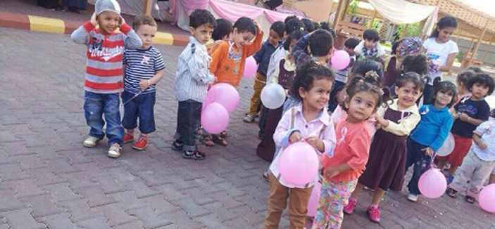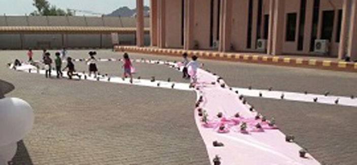 وكان اليوم الثاني للحملة قد شهد مشاركة حضانة الأطفال في جامعة طيبة من خلال تنظيم مسيرة للأطفال انتهت بتشكيلهم للشعار الرسمي للحملة التوعوية الصحية لسرطان الثدي على شكل شريط بشري كذلك.