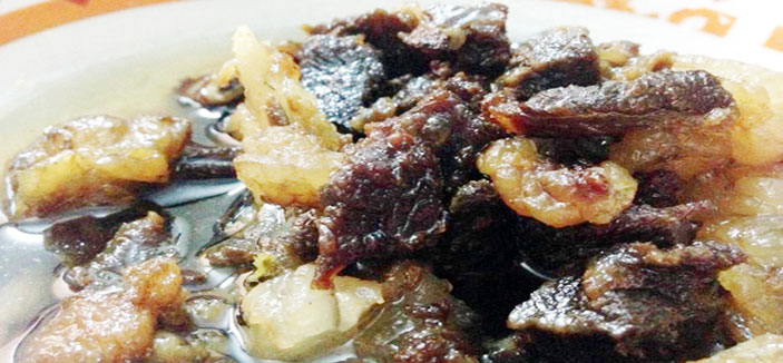 ودائماً ما يأتي عيد الأضحى محافظاً على وجبته المشهورة في جازان، التي يطلق عليها «المحشوش»، والتي يبدأ إعدادها بتقطيع اللحم والشحم إلى قطع صغيرة، كل منهما على حدة، وبعد الانتهاء من التقطيع يطبخ الشحم حتى الذوبان، ويوضع معه اللحم والبهارات والقرفة والملح، مع الاستمرار في التقليب حتى ينضج، وبعد أن يصبح جاهزاً يترك حتى يبرد؛ ليتجمد الشحم محتوياً على قطع اللحم، ويغطى بإحكام للاحتفاظ به أطول فترة ممكنة؛ حيث تظل وجبة المحشوش مدة طويلة، تستمر لشهور دون أن تتلف، شرط ألا تمسها اليد مباشرة، أو تصل إليها الرطوبة، فتأخذ منها ربة البيت على قدر الحاجة اليومية باستخدام ملعقة نظيفة، بعد تسخينها على النار.