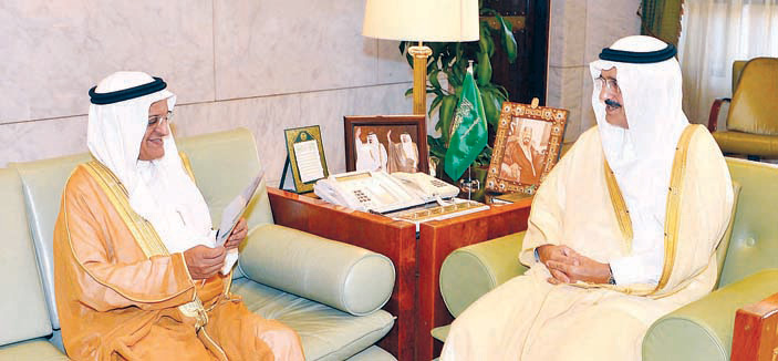 استقبل صاحب السمو الملكي الأمير خالد بن بندر بن عبد العزيز أمير منطقة الرياض في مكتبه بقصر الحكم أمس معالي رئيس مدينة الملك عبد العزيز للعلوم والتقنية الدكتور محمد بن إبراهيم السويل.