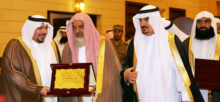 بعد ذلك قام سموه بتسليم الطلبة الحفظة جوائزهم وتوزيع الدروع وشهادة الشكر على الداعمين للجمعية ومشروعاتها الخيرية.