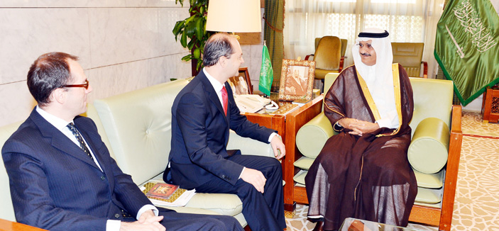من جهة أخرى استقبل صاحب السمو الملكي الأمير خالد بن بندر بن عبدالعزيز أمير منطقة الرياض في مكتبه بقصر الحكم أمس سفير جمهورية النمسا لدى المملكة جريجور كويسلر . وجرى خلال الاستقبال بحث عدد من الموضوعات ذات الاهتمام المشترك، وسبل تعزيز التعاون بين البلدين الصديقين .