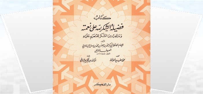 جاء في كتاب «فضيلة الشكر لله على نعمته وما يجب من الشكر للمنعم عليه» تأليف الإمام الحافظ أبي بكر محمد بن جعفر بن محمد بن سهل السامري الصادر عن دار الفكر:
