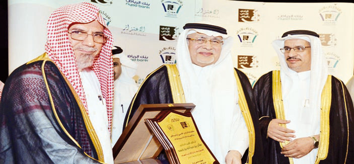 وقال معاليه: إن موضوع الكتاب فيه ثراء علمي واسع ويوصي بتوجيه الباحثين وطلاب الدراسات العليا بإجراء البحوث والدراسات العلمية والتاريخية حول الأئمة لاسيما الذين تم رصدهم ولم يوجد لهم تراجم أو الذين ذكر المؤرخون أعدادهم ولم يذكروا شيئاً عن أسمائهم أو سيرهم، وتكون من خلال بحوث علمية وندوات متخصصة، مقدماً شكره لمعالي وزير الثقافة والإعلام الدكتور عبد العزيز محيي الدين خوجة على رعايته هذه المناسبة، كما شكر معالي أمين عام دارة الملك عبد العزيز فهد السماري، ورئيس مجلس إدارة النادي الأدبي بالرياض الدكتور عبد الله بن عبدالرحمن الحيدري، وبنك الرياض على دعمه لهذه الجائزة، مهنئاً معالي أمين مدينة الرياض الدكتور عبدالله المقبل على منحه العضوية الشرفية لنادي الرياض الأدبي بعد ذلك ألقى المشرف العام على إدارة خدمة المجتمع ببنك الرياض محمد الربيعة كلمة أوضح فيها أن احتضان جائزة الكتاب والحرص على استمراريتها كونها أنموذجا ثقافيا رياديا يتصدر أولويات البنك في خدمة المجتمع وتعزيز الوعي والنهوض به، وهذا نموذج يحتذى به في مجال الشراكة المجتمعية، مشيراً إلى أن جهود المؤلف تضافرت مع جهود مركز تاريخ مكة المكرمة التابع لدارة الملك عبد العزيز ليسلط الضوء على تاريخ لم يحظ بعناية كبيرة عبر القرون الماضية على الرغم من أهميته. وتمنى أن يحتفل في الدورات القادمة بنخبة ممن ينثرون إبداعاتهم في شتى صنوف الأدب والعلوم والثقافة لتغني تجربتنا الإنسانية وترسخ حضورنا في مجتمع المعرفة.
