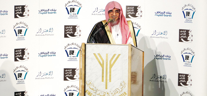 وشكر معاليه مجلس إدارة نادي الرياض الأدبي على جهدهم، وأمانة منطقة الرياض، مهنئاً معالي الأمين المهندس عبدالله بن عبد الرحمن المقبل على منحه العضوية الشرفية لنادي الرياض الأدبي .