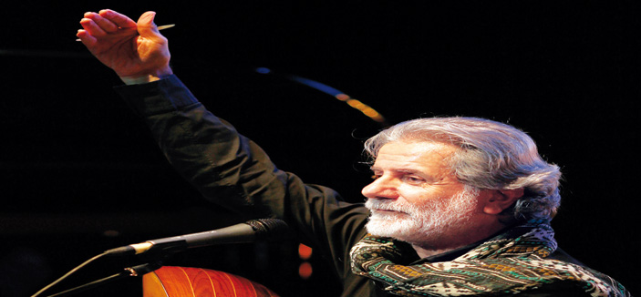 المغني والموسيقار اللبناني مارسيل يغني بمرافقة فرقة ميادين في مهرجان أناشيد قسطنطين الدولي في مدينة قسطنطين، شرق الجزائر الشمالية.