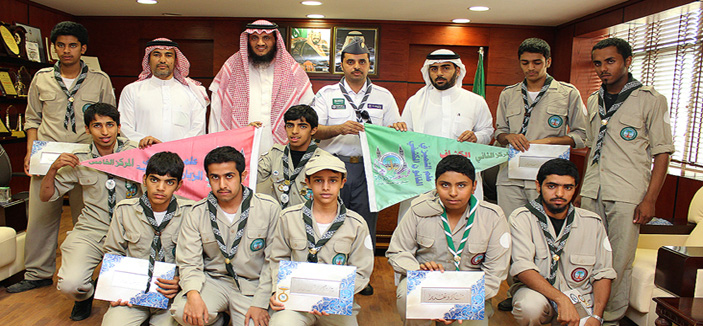 استقبل مدير التربية والتعليم بمحافظة شقراء سامي الشويمي نخبة من أفراد الكشافة المشاركين في برامج الخدمة العامة لخدمة ضيوف الرحمن بمكة المكرمة لحج هذا العام، وذلك بحضور المساعد للشؤون التعليمية عبدالله الفرحان ورئيس قسم النشاط الطلابي عبد الله المجلي وقائد الفرقة القائد الكشفي محمد الحيلان. وقد شكرهم مدير التعليم لمشاركتهم المتميزة التي حصلوا إثرها على عدد من الأوسمة إثباتاً لجدارتهم وتميزهم. وفي الختام، قدّم لهم مدير التعليم شهادات الشكر والتقدير، مؤكداً أهمية الحركة الكشفية، وأنها هي أم الهوايات والمواهب، داعياً الجميع إلى دعوة زملائهم للانخراط في الكشافة وتشجيعهم وتحفيزهم.