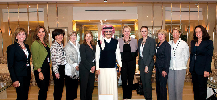 استقبل صاحب السمو الملكي الأمير الوليد بن طلال بن عبد العزيز آل سعود، رئيس مجلس إدارة شركة المملكة القابضة، ورئيس مؤسسة الوليد بن طلال الخيريَّة في مكتب سموه بالرياض وفدًا نسائيًا من الولايات المتحدة الأمريكية التابع لمنظمة بريجز اوف اندرستاندنق Bridges of Understanding وقد ترأس الوفد الأستاذ فيصل الجبوري، المدير التنفيذي Bridges of Understanding.