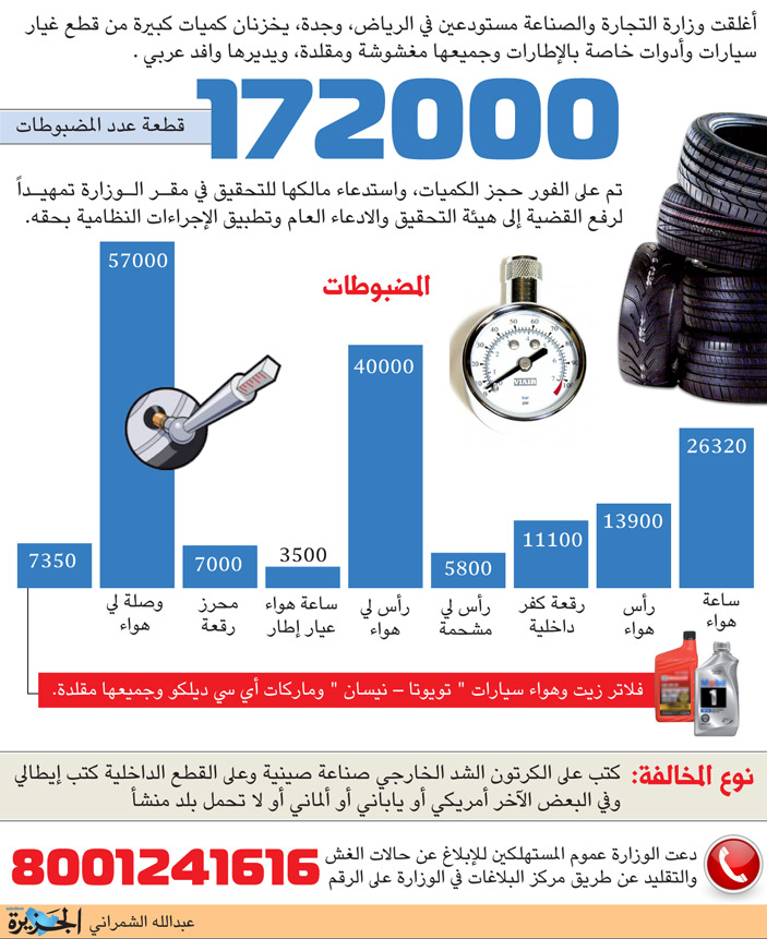 التجارة تصادر 172 ألف قطعة غيار سيارات مقلدة
