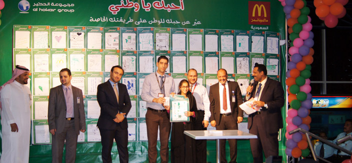 تتويجاً لختام حملة «أحبك يا وطني» التي أطلقتها «ماكدونالدز السعودية» بالتعاون مع مجموعة الحكير بمناسبة اليوم الوطني ، أقامت الشركة حفلاً تكريمياً للأطفال الفائزين بأفضل الرسومات الفنية الإبداعية التي تعبر عن محبة الوطن في عيونهم الذين قاموا بترجمة مشاعرهم الجملية تجاه الوطن إلى أعمال فنية رائعة.