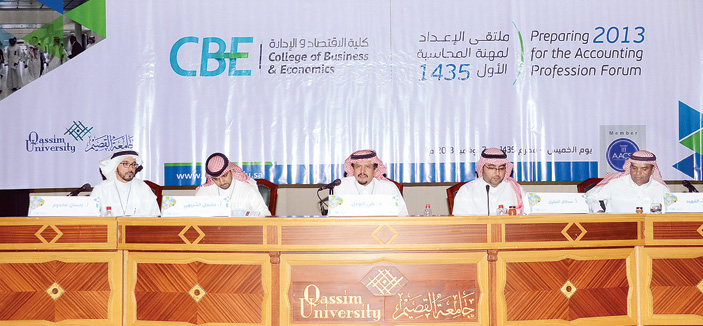 افتتح معالي مدير جامعة القصيم الأستاذ الدكتور خالد بن عبد الرحمن الحمودي ملتقى الإعداد لمهنة المحاسبة (الأول) والذي نظمته كلية الاقتصاد والإدارة ممثّلة بقسم المحاسبة والمنعقد في رحاب جامعة القصيم، ويأتي هذا الملتقى من أجل تفعيل أنشطة تعلم الطلبة خارج قاعة الدرس وزيادة تفاعلهم وبناء مهاراتهم المهنية، وقد تكوَّن الملتقى من ثلاث جلسات: حيث شارك في الجلسة الأولى الدكتور عبيد المطيري عميد كلية الاقتصاد والإدارة بالجامعة والأستاذ طارق السدحان من مكتب كي بي أم جي للمراجعة والأستاذ هندي السحيمي من هيئة سوق المال والأستاذ عبد الله الخليفة من البنك العربي، وأدار الجلسة الدكتور نزار الشويمان، وفي الجلسة الثانية شارك الأستاذ إحسان مخدوم من مكتب دليويت للمراجعة والأستاذ سلطان المقرن من ديوان المراقبة العامة والأستاذ مشعل الشريهي من مصرف الراجحي والأستاذ أديب الفهيد من مجمع التميمي، وأدار الجلسة الدكتور علي النودل.. وأما في الجلسة الثالثة والأخيرة فشارك فيها الأستاذ صالح الداود من مؤسسة النقد والدكتور محمد العقيل من الهيئة السعودية للمحاسبين القانونيين والأستاذ عبد الله الفراج من البنك الأهلي وأدار الجلسة الدكتور أحمد السلمان.