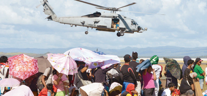 وقالت ابيجيل فالت نائبة المتحدث الرئاسي الفلبيني: «الجميع يدفع بالجهود على نحو أسرع .لكننا نحتاج إلى تقديم دعم من أجل حوالي 357 , 1 مليون شخص وذلك يعني بذل جهد كبير من أجل إيصال 140 ألف عبوة غذائية يوميا». ولا يزال عدد الموتى في الكارثة غير واضح، حيث رفعت حكومة الفلبين أحدث تقديرات لعدد قتلى الإعصار هايان القوي إلى 4460 قتيلا وهو ضعف العدد الرسمي الذي أعلنته من قبل لكنه لا يزال اقل من تقدير السلطات المحلية بأن العدد يبلغ عشرة آلاف قتيل. وبدأت طائرات الهليكوبتر من حاملة طائرات أمريكية وسفن حربية أخرى نقل إمدادات الطعام والماء والدواء إلى المناطق التي اجتاحها الإعصار.