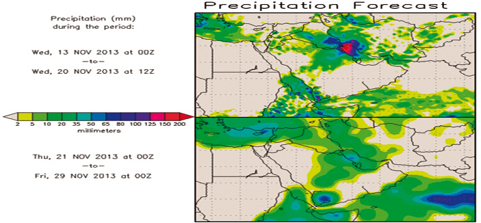 هذا ومتوقع ألا تكون الأمطار ذات مقدار واحد وعلى خط واحد، لأنها ليست أمطاراً ناجمة عن التقاء جبهات، بل سنجدها متفرقة ومتباينة بين المواقع الجغرافية، وفقاً لتوافر البيئة الجوية المناسبة لبناء السحب الممطرة، كما ستكون حبات البرد الكثيف حاضرة في كثير من العواصف الرعدية بعد منتصف النهار، هذا والله أعلم.