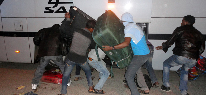 بدأ آلاف العمال المخالفين لنظام الإقامة والعمل مغادرة مراكز الإيواء في محافظة المزاحمية؛ إذ تم تسيير مساء أمس 76 حافلة إلى مدينة جدة تمهيداً لترحيلهم، وذلك بالتنسيق بين الجهات الأمنية والجهات ذات الاختصاص بتسليم وترحيل من انتهت إجراءاتهم الأمنية إلى بلادهم. هذا، ولا تزال شرطة منطقة الرياض تواصل أعمالها اليومية في استقبال العمالة المخالفة ونقلها إلى مراكز الإيواء في العاصمة الرياض.