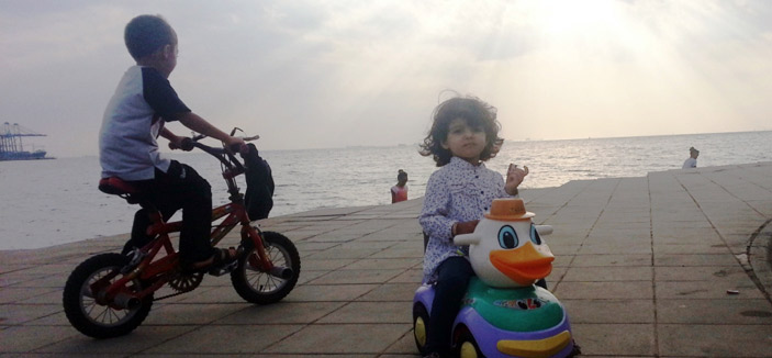 كما يشهد كورنيش جدة إقبالا كبيراً من الأسر القادمة من مختلف مراكز ومحافظات المنطقة للاستمتاع بالأجواء البحرية الجميلة , وممارسة بعض الهويات المفضلة مثل : رياضة المشي والصيد وايضاَ يتسابق الزوار كبارا وصغارا على التمتع بالوسائل الترفيهية المنتشرة على طول الكورنيش , أو الشواء والتنزة والالتقاء مع الأهل والأصدقاء.