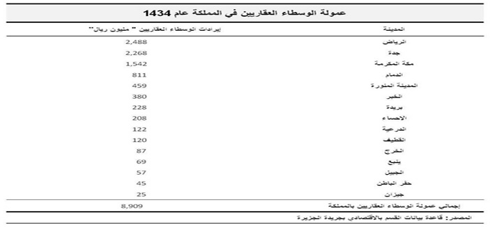 8.9 مليارات ريال إيرادات الوسطاء العقاريين بالمملكة العام الماضي