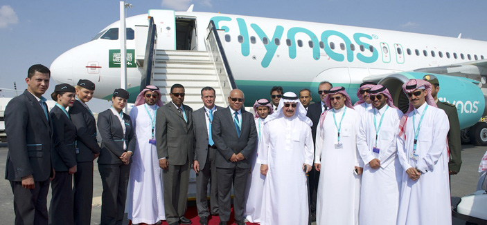 دشن سمو الأمير فهد بن عبدالله رئيس الهيئة العامة للطيران المدني السعودي طائرة الشاركليت إيرباص A320 التابعه لطيران ناس بهويتها الجديدة خلال معرض دبي الدولي للطيران 2013.