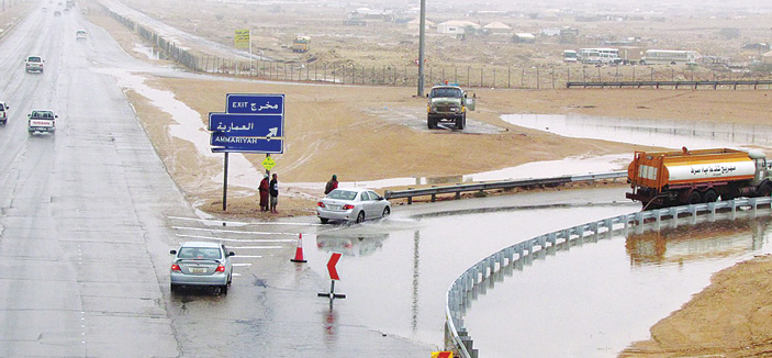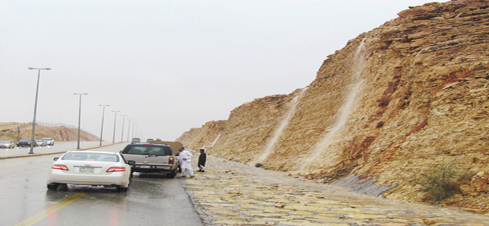 وأسهمت الأمطار في نشوء الضباب وجريان المياه بشكل لافت للنظر، ورغم خطورة تلك الأماكن إلا أن البعض أوقف سيارته وترجل للتصوير والاستمتاع بمشاهدة الشلالات المنهمرة. كشفت الجولة الميدانية لـ»الجزيرة» عن تواجد فرق الصيانة التابعة للإدارة العامة للطرق والنقل بمنطقة الرياض على الطرق السريعة، حيث رصدت عدسة «الجزيرة» فرق صيانة لإزاحة المياه من التقاطعات والميادين على طريق الملك خالد «صلبوخ»، وذلك لتسهيل حركة المرور وتوفير السلامة لسائقي المركبات.