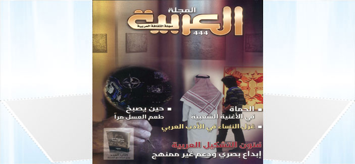 العدد 444 من المجلة العربية اشتمل على موضوع عن فنون التشكيل العربية.. وقصيدة بعنوان صهيل الحرف للشاعر د. عبدالله عطية الزهراني.. وأخرى بعنوان: «رحلة» للشاعر عمر شبانة..