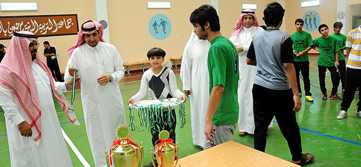 بحضور مدير إدارة التربية والتعليم بالرس خليفة صالح المسعود ورئيس قسم النشاط المدرسي الأستاذ ماجد غازي العوفي اختتمت على صالة مدرسة الشيخ محمد بن عبدالوهاب الابتدائية بطولة كرة القدم للصالات للمرحلة الثانوية والتي أشرف عليها قسم التربية البدنية ممثلاً برئيس القسم سعد صالح الخليفة ومشرف التربية البدنية سليمان محمد العواجي وبمشاركة نخبة من معلمي التربية البدنية أعضاء لجان التحكيم واللجان الفنية والإدارية.