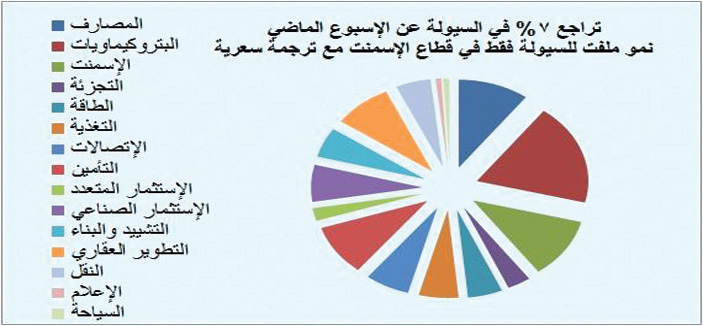 - 23.9 مليار ريال السيولة المجمعة للسوق بتراجع حوالي 7.7 % عن الأسبوع الماضي.