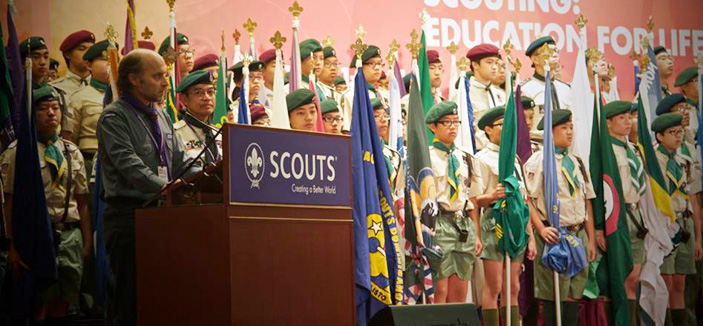 وكان الحفل الذي حضره ممثلون لأكثر من 100 جمعية كشفية وطنية وإقليم وهيئة كشفية وتربوية قد شهد تقديم عروض وكلمات، تحدث في أولها الدكتور لوشين تشينغ رئيس الأكاديمية الدولية في هونغ كونغ، وقال فيها إن الكشافة يمكن أن تحسن التعليم في المدارس، وإن هذا لا يتأتى إلا إذا كانت الكشافة من أولويات الدول.