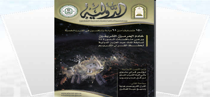 صدر عن الأمانة العامة لمسابقة القرآن الكريم بوزارة الشؤون الإسلامية والأوقاف والدعوة والإرشاد عدد خاص من (الدولية) بمناسبة انطلاق الدورة الخامسة والثلاثين لمسابقة الملك عبدالعزيز الدولية لحفظ القرآن الكريم وتلاوته وتفسيره في مكة المكرمة، تصدَّر العدد الذي يقع في 136 صفحة، كلمات مضيئة لخادم الحرمين الشريفين الملك عبدالله بن عبدالعزيز، وسمو ولي عهده الأمين صاحب السمو الملكي الأمير سلمان بن عبدالعزيز، وسمو النائب الثاني الأمير مقرن بن عبدالعزيز ـ حفظهم الله ـ، واشتمل العدد على مجموعة مقالات عملية في مجال الدراسات القرآنية، واستطلاعات مع أمراء المناطق، وندوات صحفية مع بعض الوزراء والسفراء وكبار المسؤولين في الدولة، كما تضمن الإصدار تقارير قرآنية عن أحوال المشاركين في المسابقة مع اختلاف بلدانهم وتنوع لغاتهم، ولقاءات متنوعة مع المشاركين في الدورة التدريبية على مهارات التحكيم في المسابقات القرآنية، وفي العدد إضاءات عن الرئاسة العامة لشؤون الحرمين الشريفين، وتزينت (الدولية) بمجموعة تقارير مصورة تحكي شيئاً من سير المسابقة وبعض برامجها.